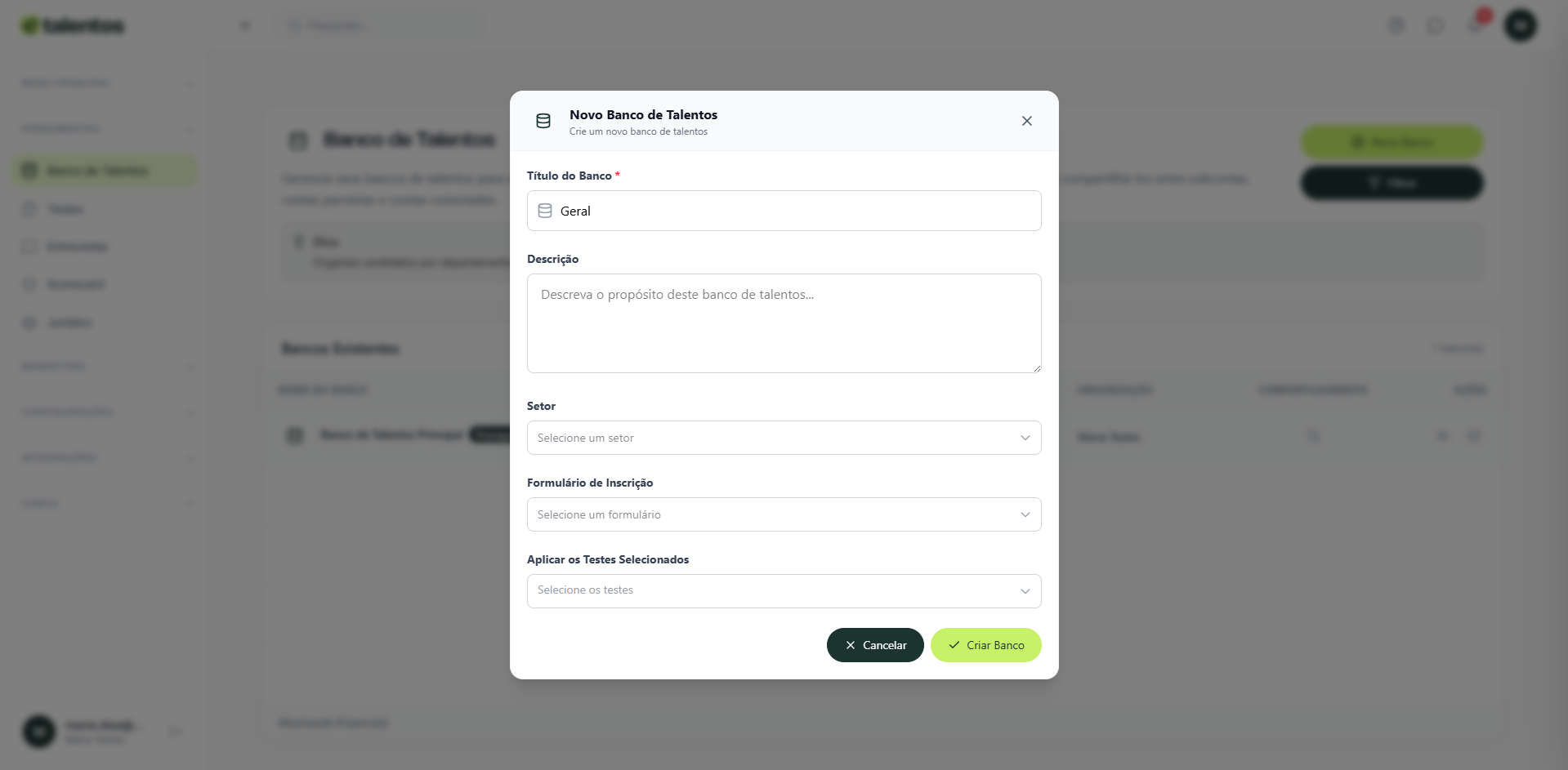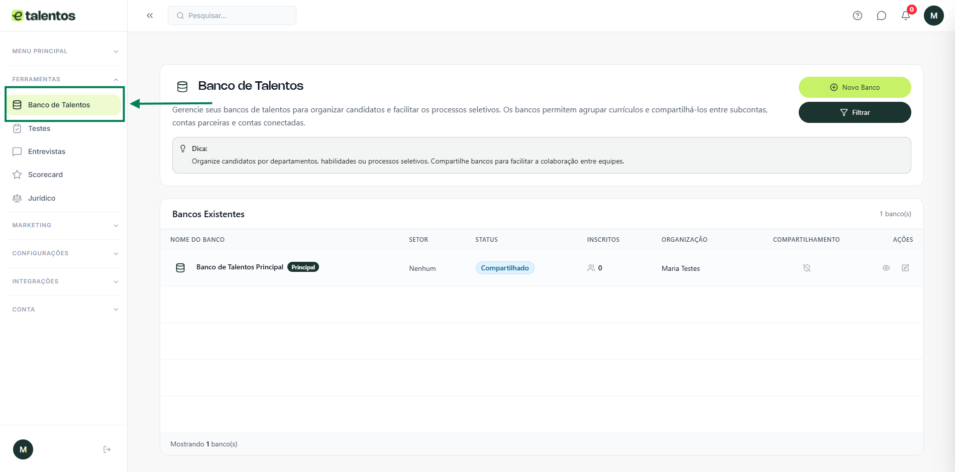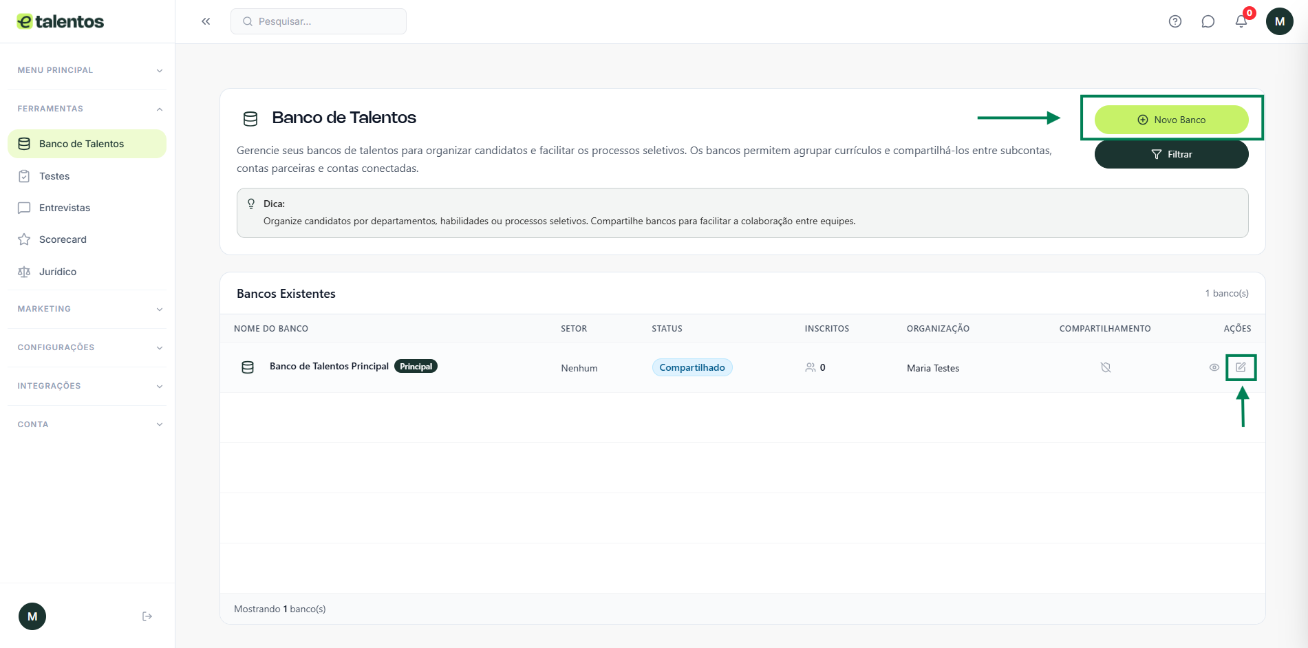 Acesse ou crie um novo Banco de Talentos #