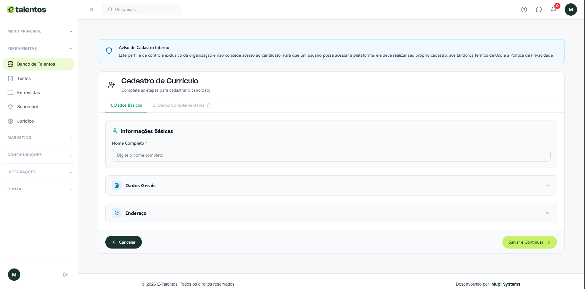 Passo a passo para criar um banco de talentos na plataforma E-talentos #