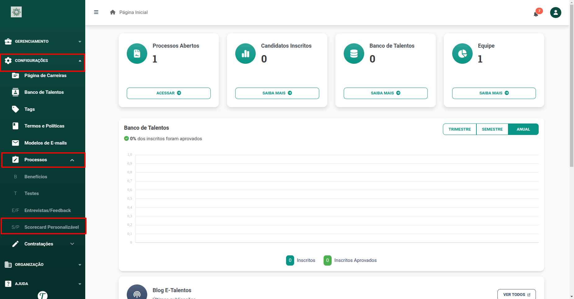 No menu lateral, acesse “Configurações” > “Processos” > “Scorecard Personalizável”.