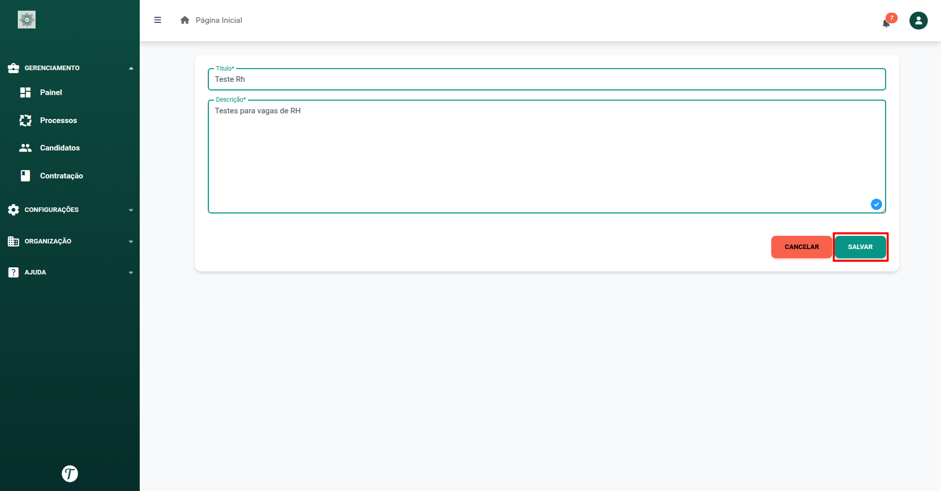 Durante a criação do processo seletivo, também é possível criar perguntas de maneira automática com o uso de inteligência artificial. Após preencher as etapas de “Dados Gerais“e “Descrição do Processo“.