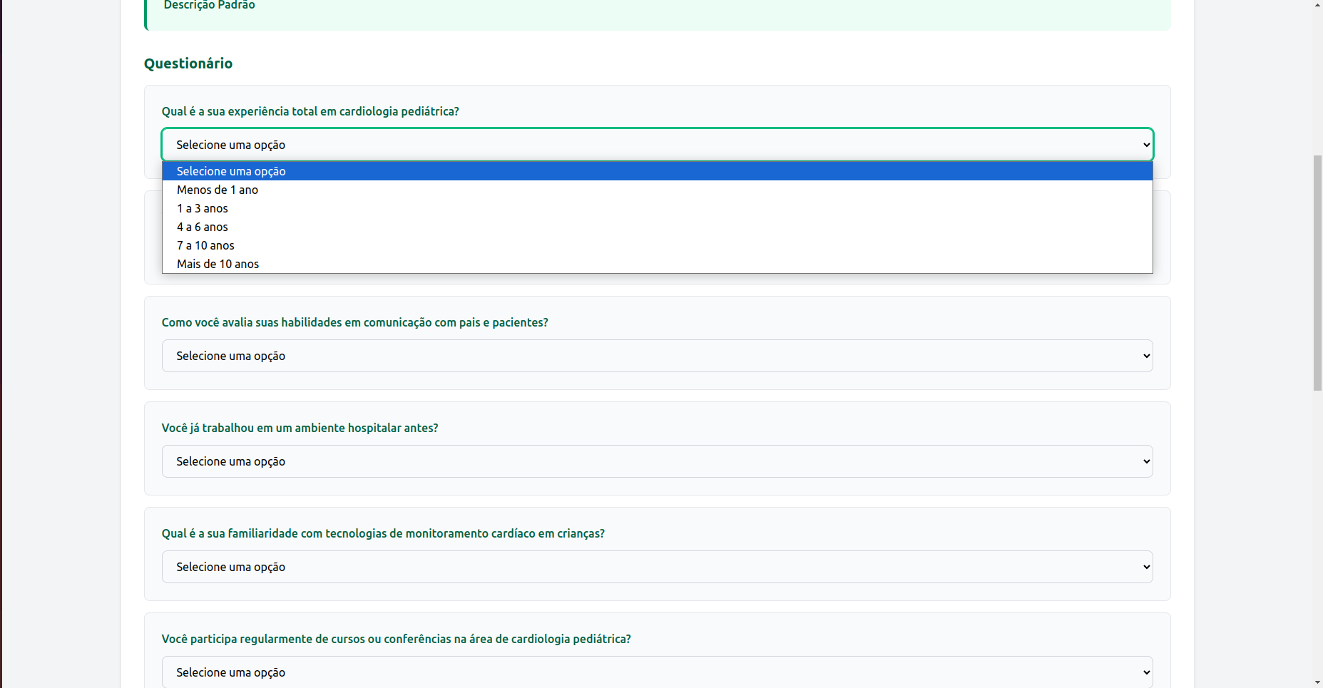 • Escreva uma pergunta clara, objetiva e direta , que capture informações relevantes sobre o perfil do candidato.