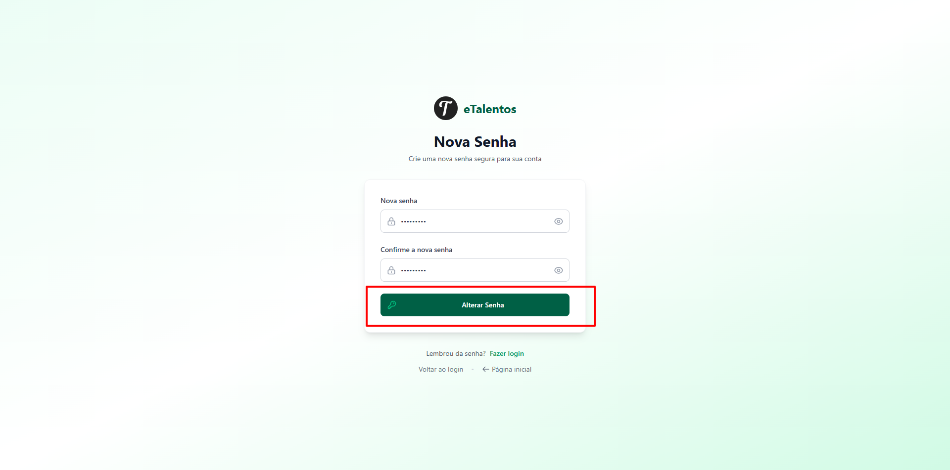 2. Confirme no campo “Confirme a nova senha”.