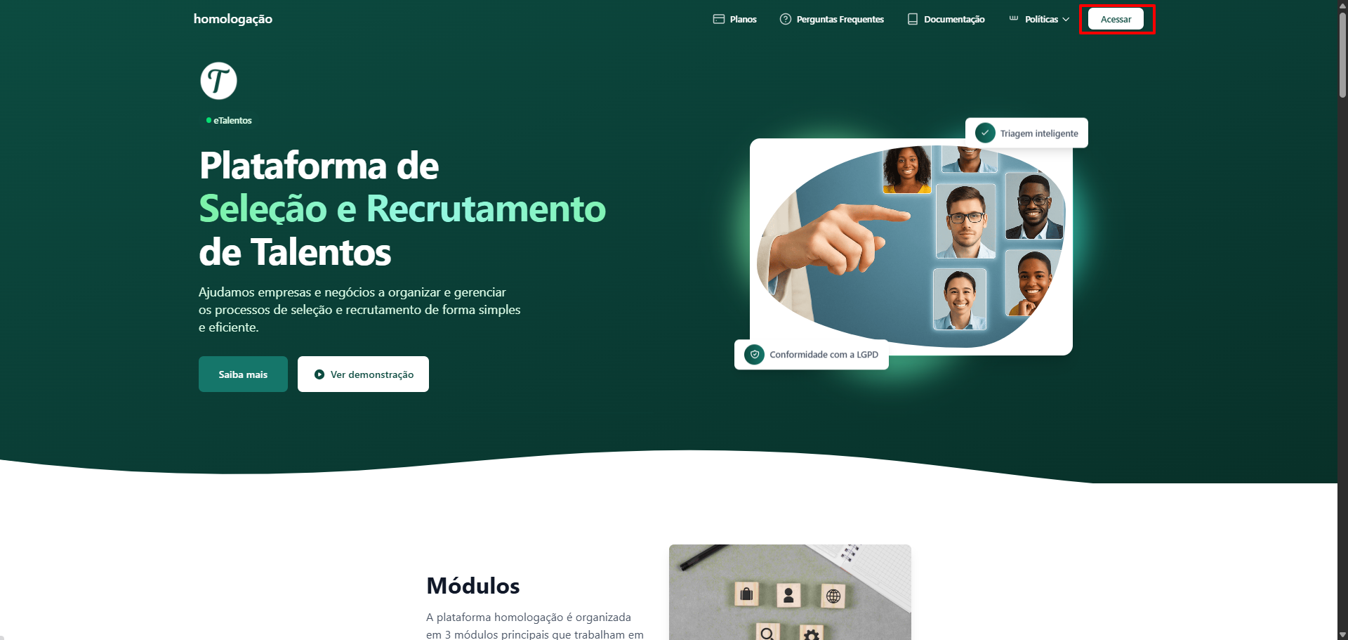 1. Acesse www.etalentos.com.br.